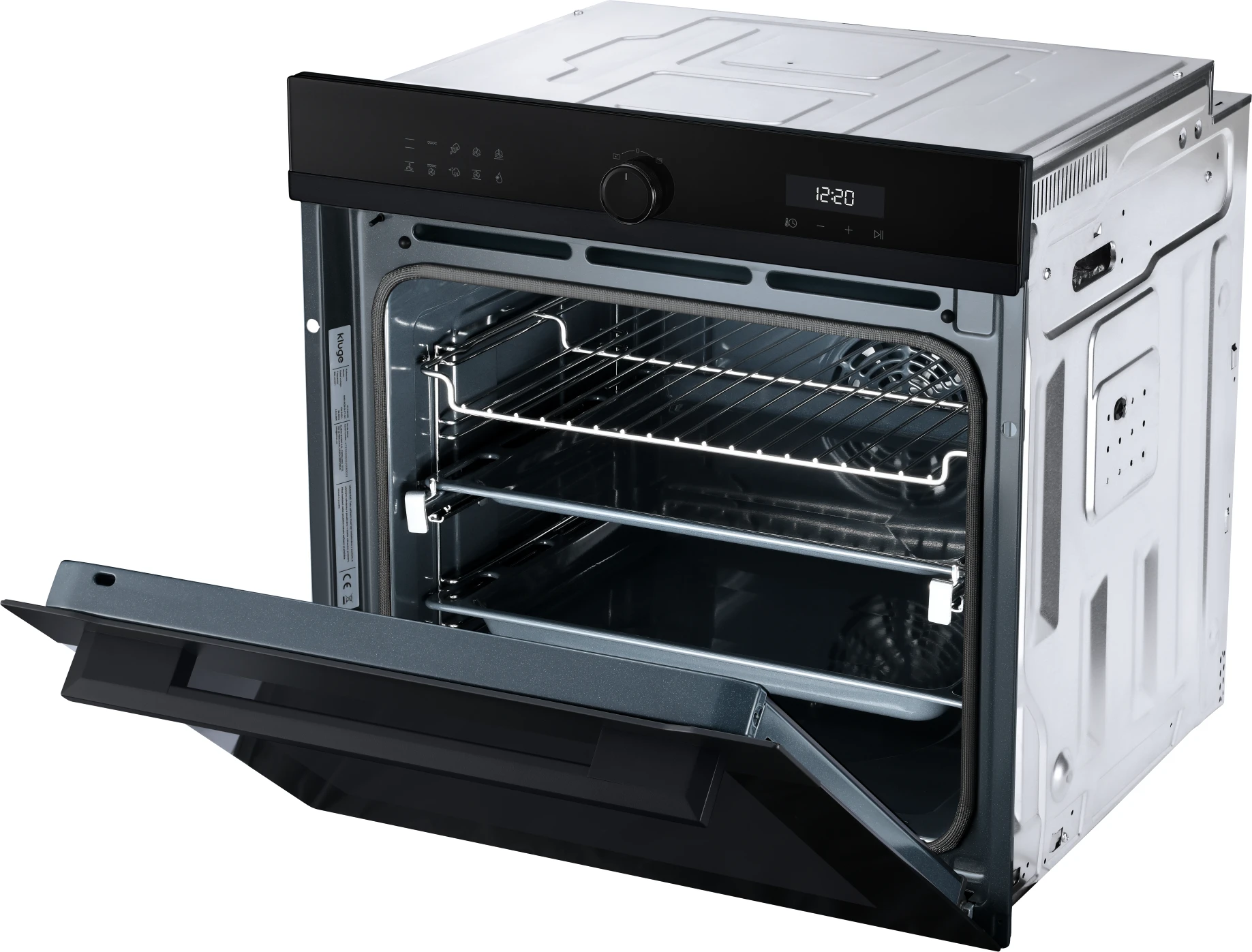 Multifunkční pyrolytická trouba v černém barevném provedení; Bílý LCD displej s černým otočným voličem; Vnitřní objem trouby 81 l; Energetická třída A; Soft Close - dvířka se šetrným automatickým dovíráním; Cool Touch - chladná dvířka se 4 skly a odnímatelným vnitřním sklem; 10 pečicích programů; Pyrolytické čištění; Dětská pojistka; Automatické vypnutí; Příslušenství: Boční rošty, teleskopický výsuv, bezpečnostní rošt, hluboký a mělký plech; Rozměry pro vestavbu (VxŠxH): 59,6 x 56,5 x 56 cm; Rozměry (VxŠxH): 59,5 x 59,4 x 57,5 cm.